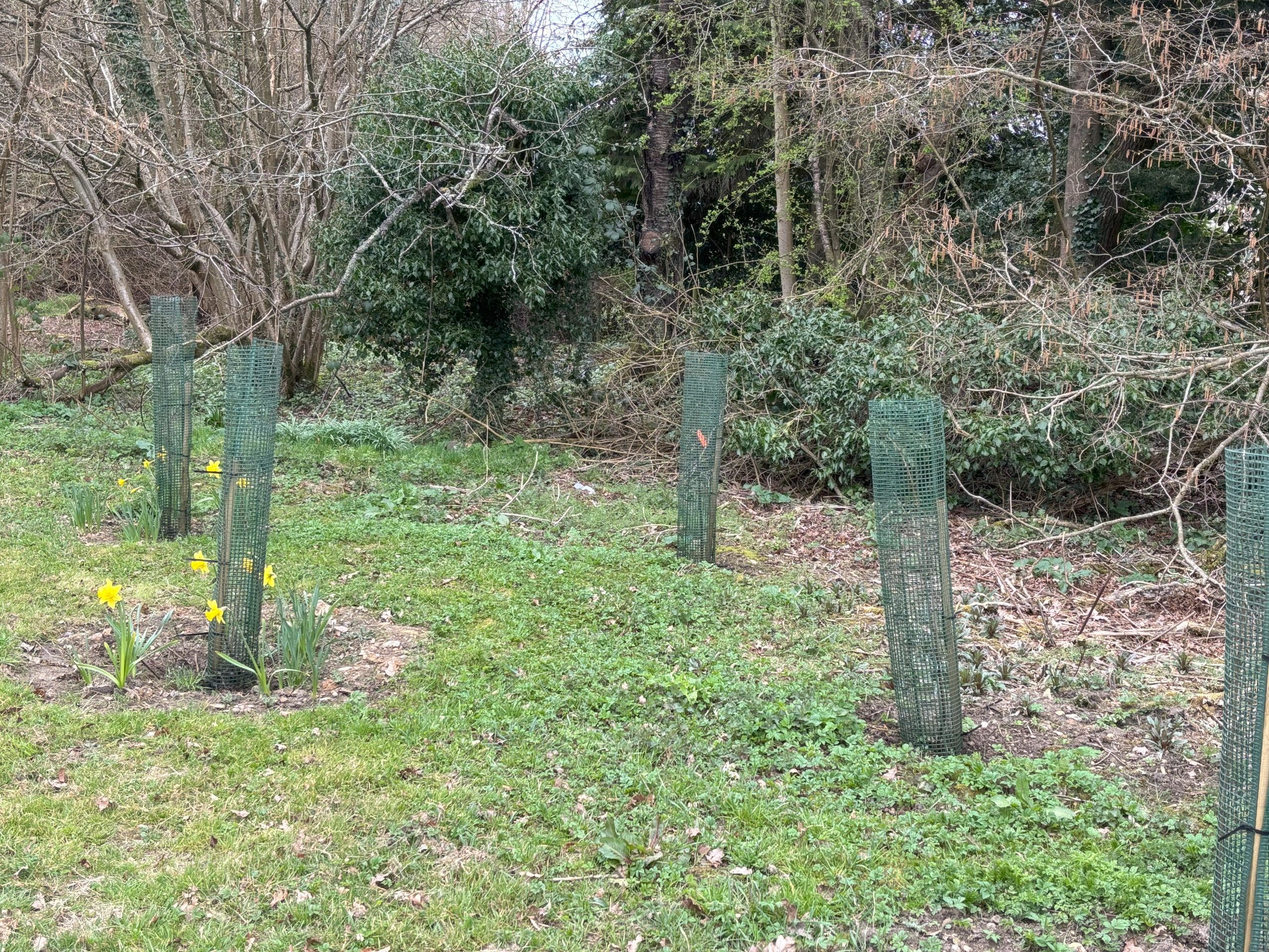 The recently planted trees are all showing signs of growth and looking really healthy.